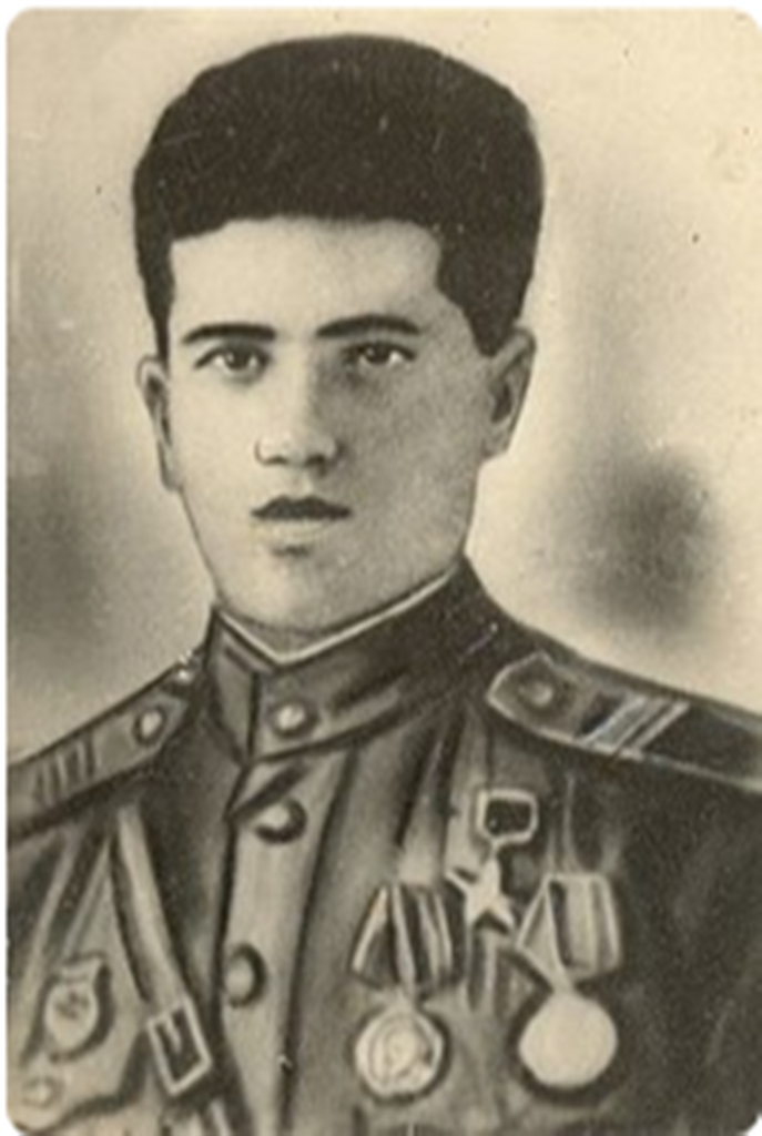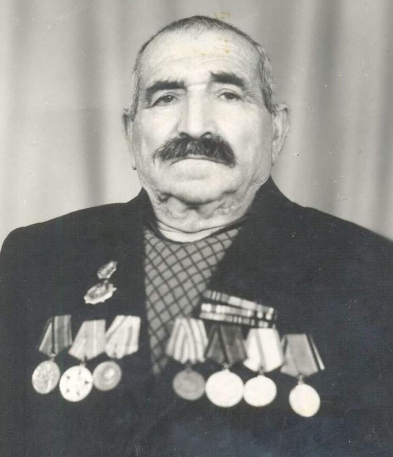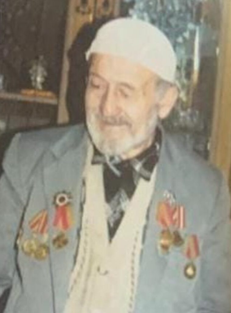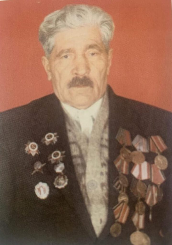 Алиев Айдын Сылоевич родился в 1924 году в селе Ахчия Аспиндзинского района Грузинской ССР. В 1942 г. в 17-летнем возрасте ушел на войну, участвовал в боях по освобождению таких городов, как Маздек, Малдабек, Грозный, Нальчик, Махачкала, воевал на Малой Земле, Курской Дуге, дошел до Будапешта, видел много людского горя. Весной 1944 года за участие в освобождении Будапешта он был награжден орденом Великой Отечественной Войны II степени. После тяжелого ранения перенес две сложные операции, долго лечился в Куйбышеве, затем был отправлен в Сталинград, восстанавливать город. Здесь и праздновал Великую Победу.