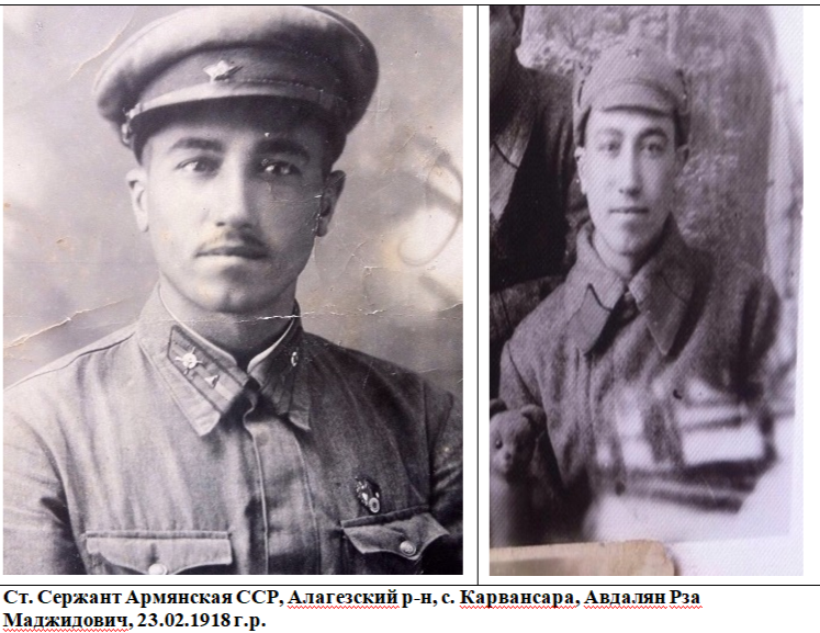 младший сержант Аджо Усоевич Аджоян (из с. Камышлу Октемберянского района Армянской ССР), сержант Мерали Атамович Надоев (из с. Чобанмаз Апаранского района Армянской ССР), участник боев за освобождение Будапешта, Вены, Белграда, гвардии рядовой Мураз Мардоевич Худоев (из с. Джарджа-рис Апаранского района Армянской ССР). А также Джалил Ханоевич Садоян (из с. Карвансара Артикского района Армянской ССР) и многие, многие другие.