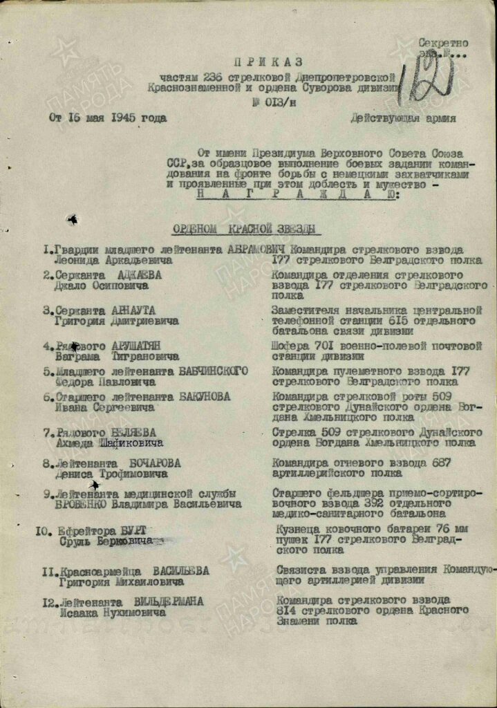 БОЕВОЙ ПУТЬ АДЖОЕВА Д.О.